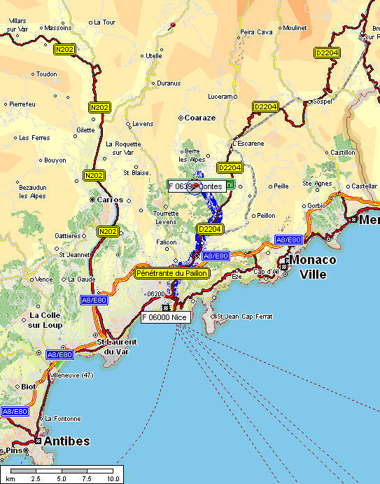 | 37 km de Menton 28 km de Monaco 17 km de Nice 29 km de St Laurent du Var 19 km de Levens
