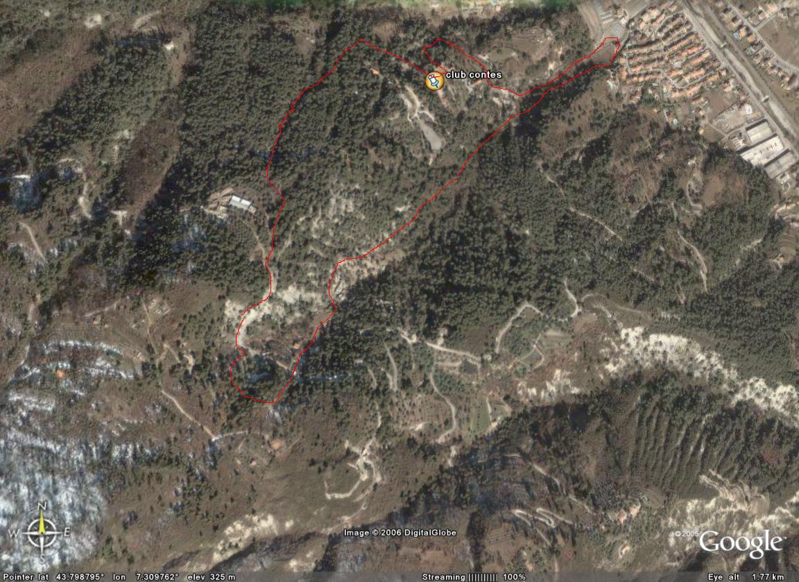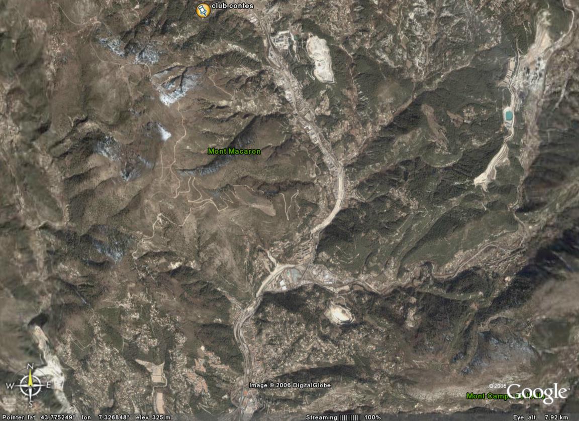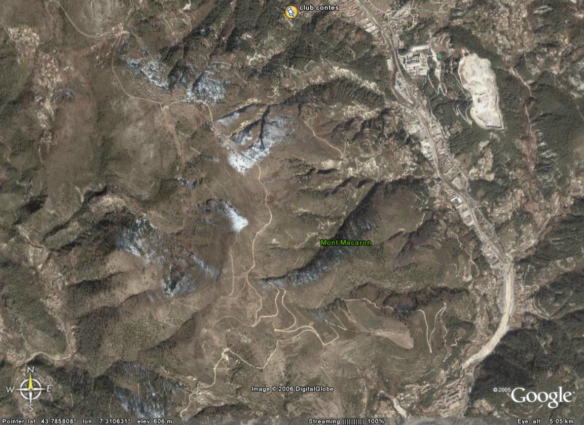 Les pistes du Mont Macaron, en bas Nice l'Abadie, en haut Tourrette-Levens, à