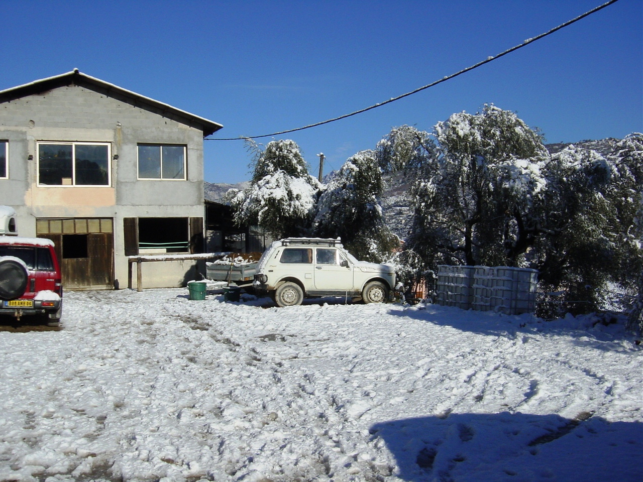 centre équestre sous la neige. Cela n'arrive pas tous les jours heureusement et à