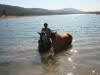 Novembre 2007, la jument a beaucoup changée, en bien...la voila lors d'une promenade à cheval au lac, c'est sa première baignade: